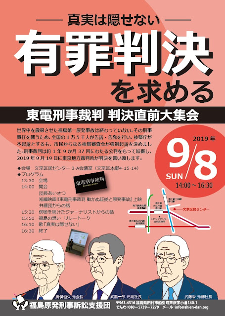 東京地裁の不当判決を認めることなく、控訴審で引き続き東電旧経営陣の罪が追及されます。